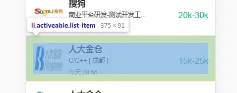- 中间每条招聘信息不管分辨率怎么变,招聘公司的图标等信息都位于条目的左边,薪资都位于右边,且高度也没有变化。