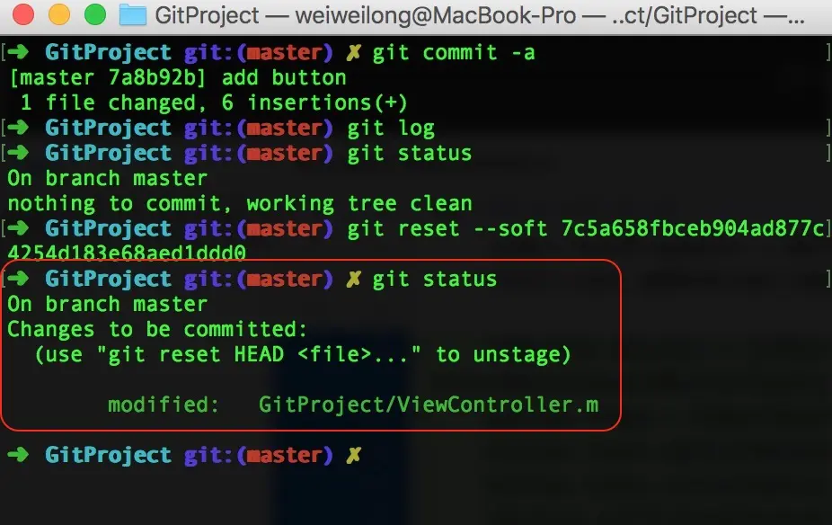 执行git reset --soft 7c5a658fbceb904ad877c4254d183e68aed1ddd0 命令,然后使用git status 查看文件状态。