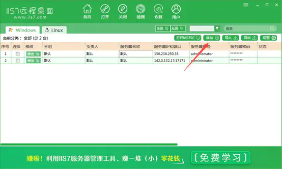 2.IIS7远程桌面 是专业vps管理服务器管理的工具,功能多样化,并且不断的改善,可批量管理WIN系列服务器,VPS,电脑。批量导入服务器的IP,端口,账号和密码。批量打开N个服务器的远程桌面