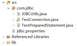注意因为我们在获取配置信息时,使用的是系统类加载器,因此要把jdbc.properties放在当前类所处的src目录下。