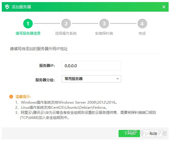 2.输入待添加的云服务器公网IP地址,点击下一步