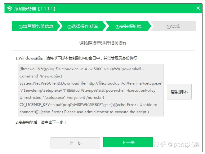 4.复制脚本,远程安装探针端