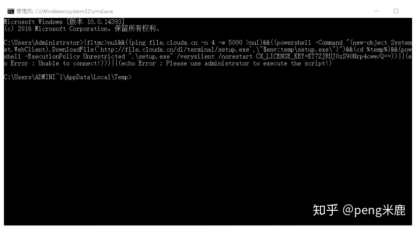 开始菜单->运行->输入cmd命令,并以管理员身份运行cmd程序,打开命令提示符后,将复制的脚本粘贴到命令提示符中执行脚本