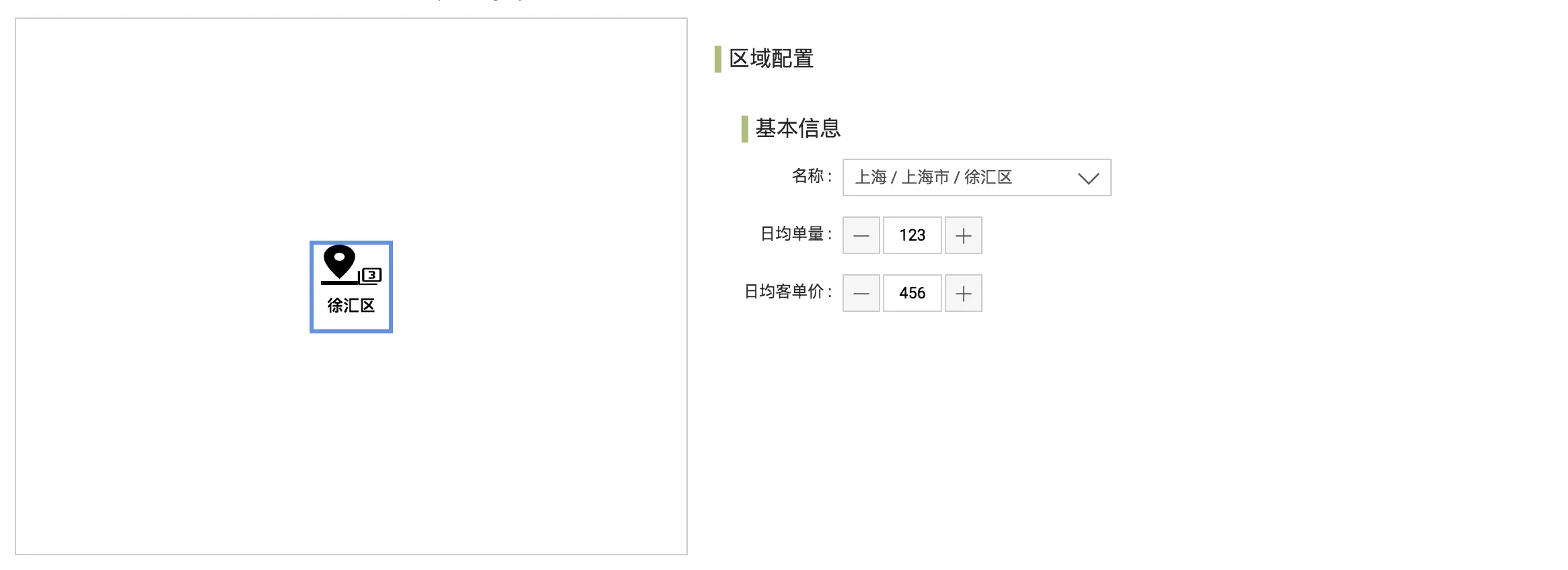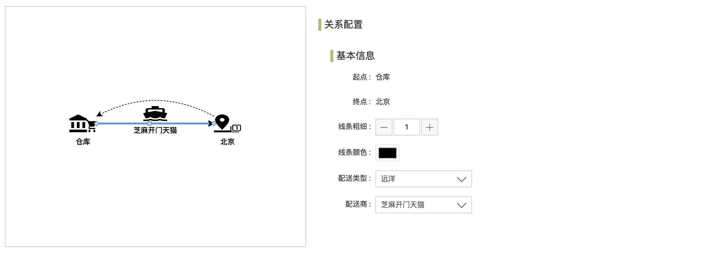 除了画布内部元素的直接交互,画布元素还可以与业务表单进行交互,比如:我们封装的含有业务逻辑的仓库组件、区域组件、关系组件。