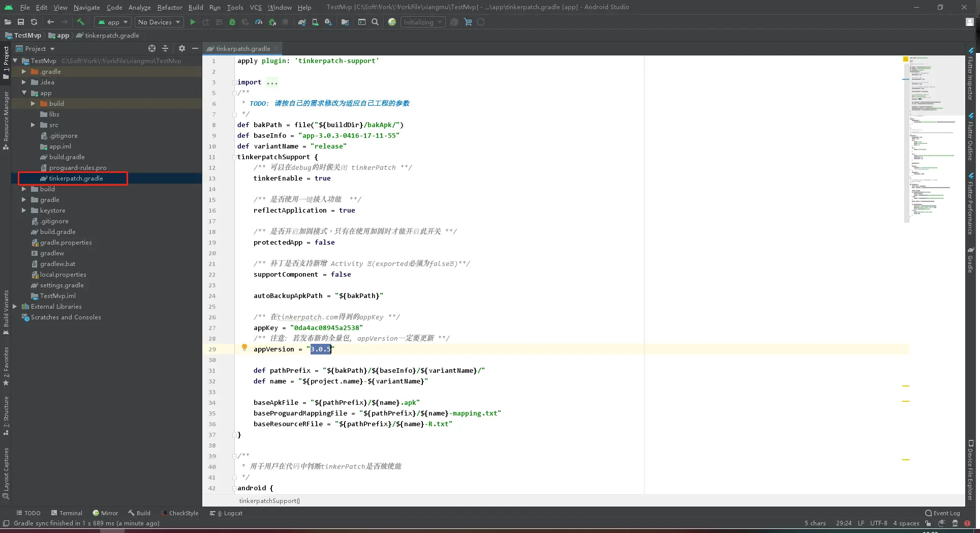 下面我要生成补丁了 打开tinkerpatch.gradle修改baseInfo
