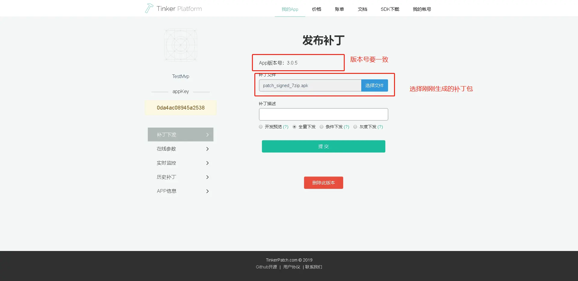 }tinkerpatch.com/ 官网地址 ---------》创建应用 拿取appley