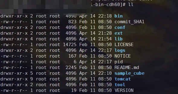 wget https://mirror.bit.edu.cn/apache/kylin/apache-kylin-3.0.1/apache-kylin-3.0.1-bin-cdh60.tar.gz1.3 解压查看软件目录