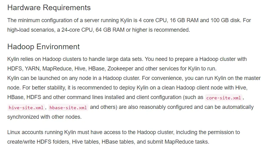 2.1 配置kylin环境,一定要看清楚并理解官方给出一软硬要求,特别是环境要求