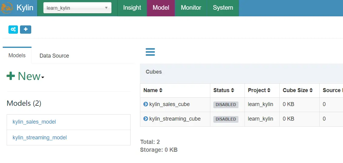 ./bin/sample.sh执行完上面脚本后,会生成一些测试数据,然后重启一下kylin或者在ui界面system 页面上点一下reload metedate 然后返回Model页就可以看见数据了