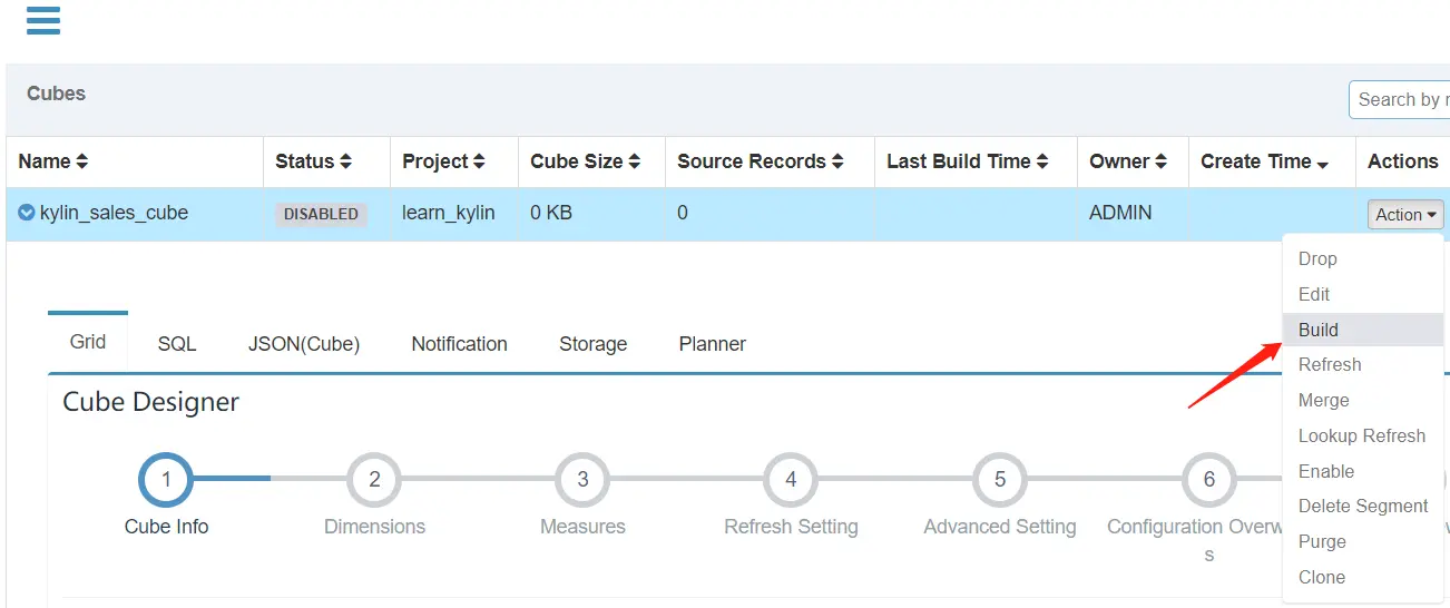 4.1 登陆kylin UI之后,我们需要执行一个测试例子
