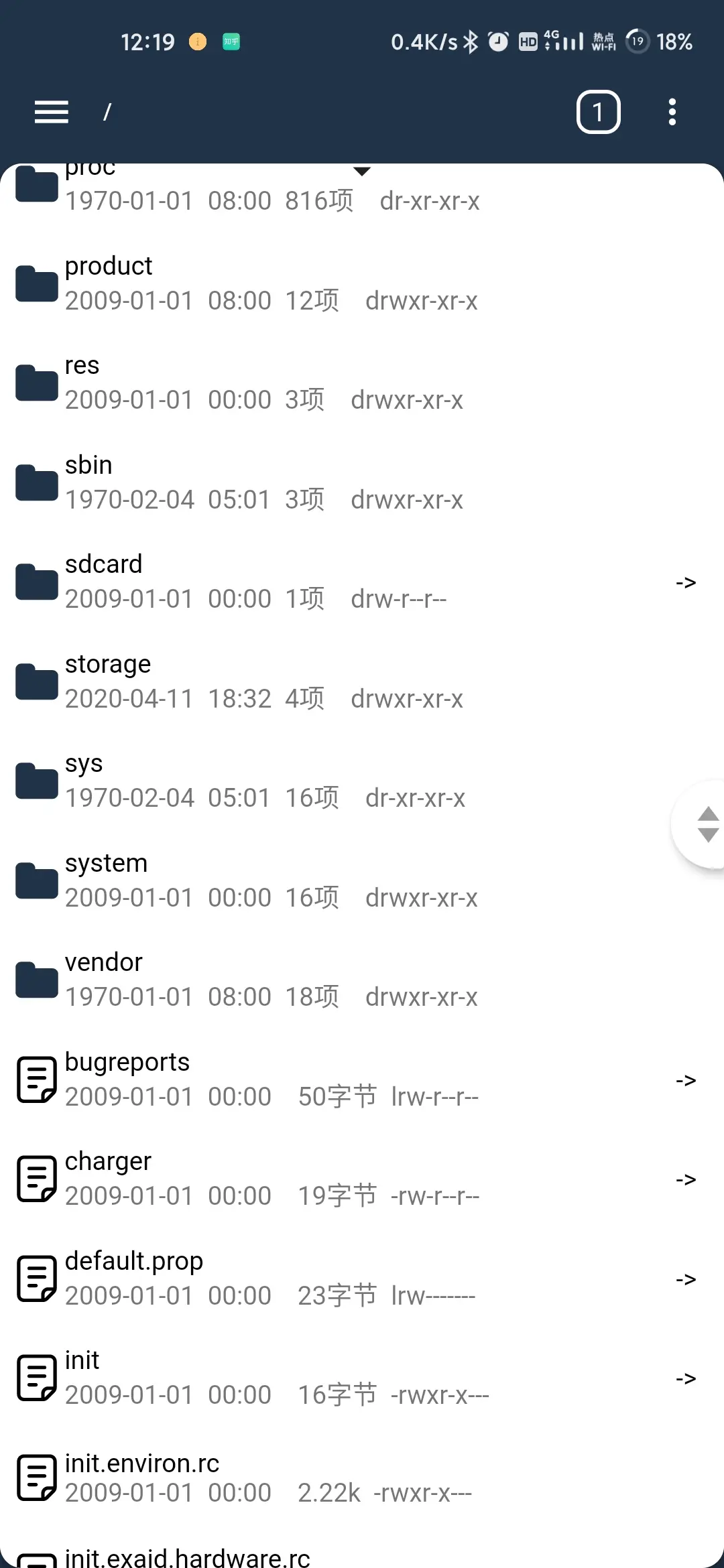 在无ROOT的安卓设备上去获取根目录/的列表时,会出现部分节点无法获取信息的情况,列表会直接报红(当然可以通过优化代码来避免),毕竟设备本来没有高级权限嘛。