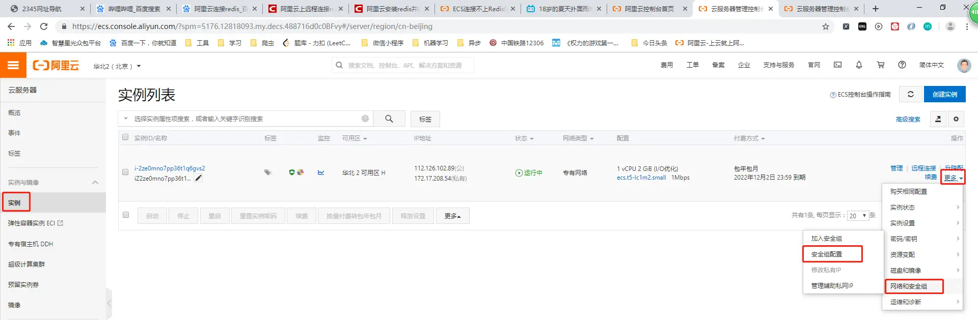 2.1.实例---更多---网络安全组---安全组配置