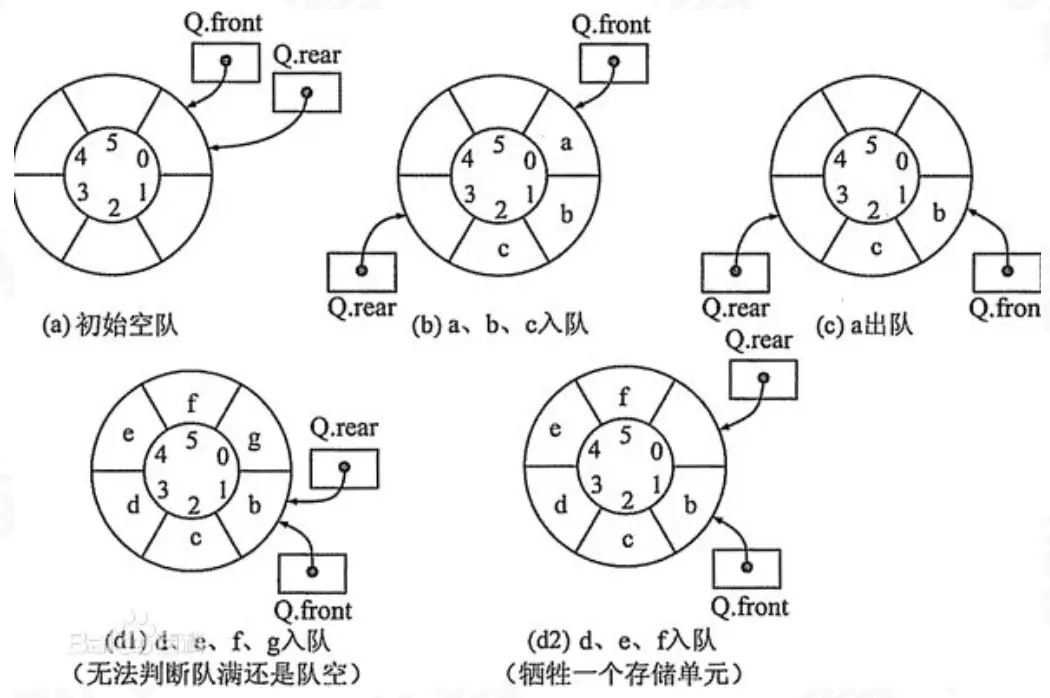 顺序队列、循环队列 图解如下图所示: