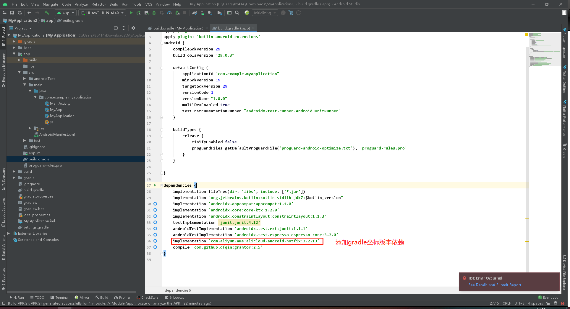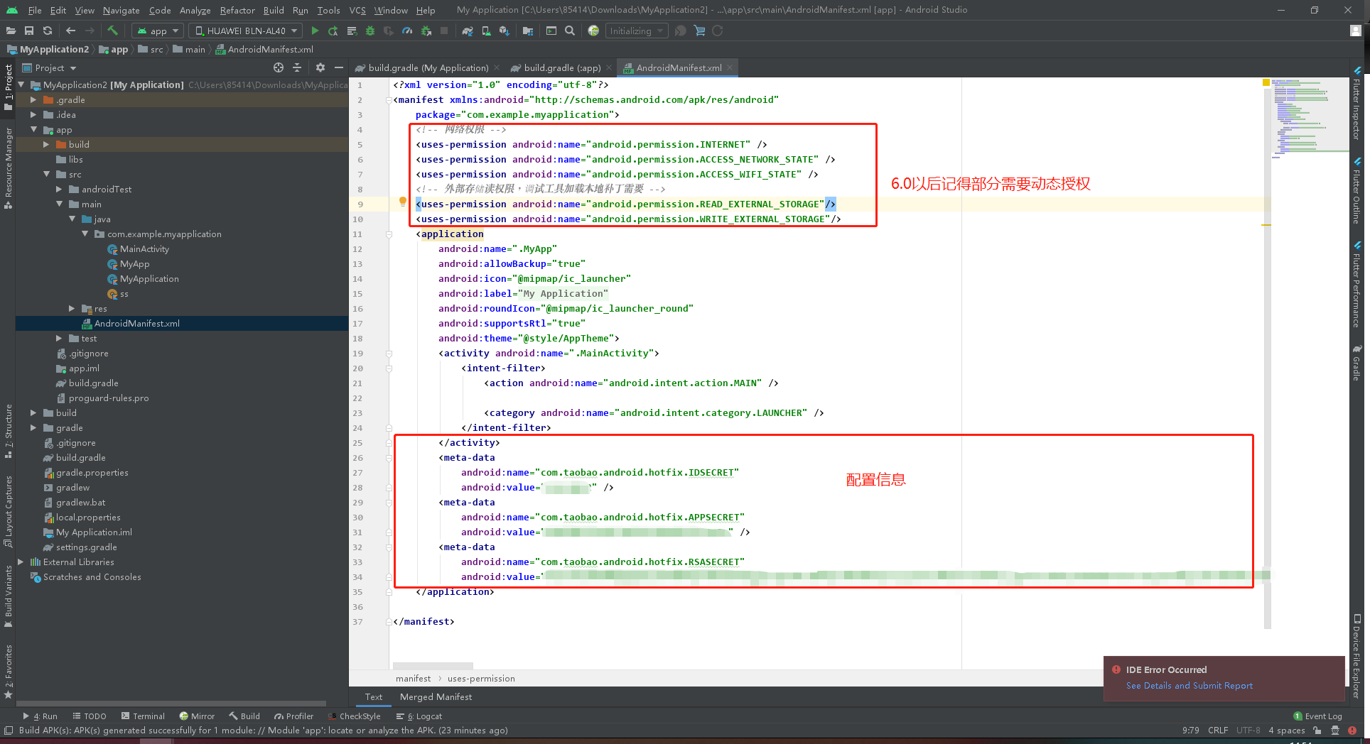 结尾:用了阿里Sophix,我的荣耀手机可以实现热更新了。妈妈再也不用担心我的学习了。。。。。。。。。。确实比Tinker好用简单的不得了。。。。。。。。。。