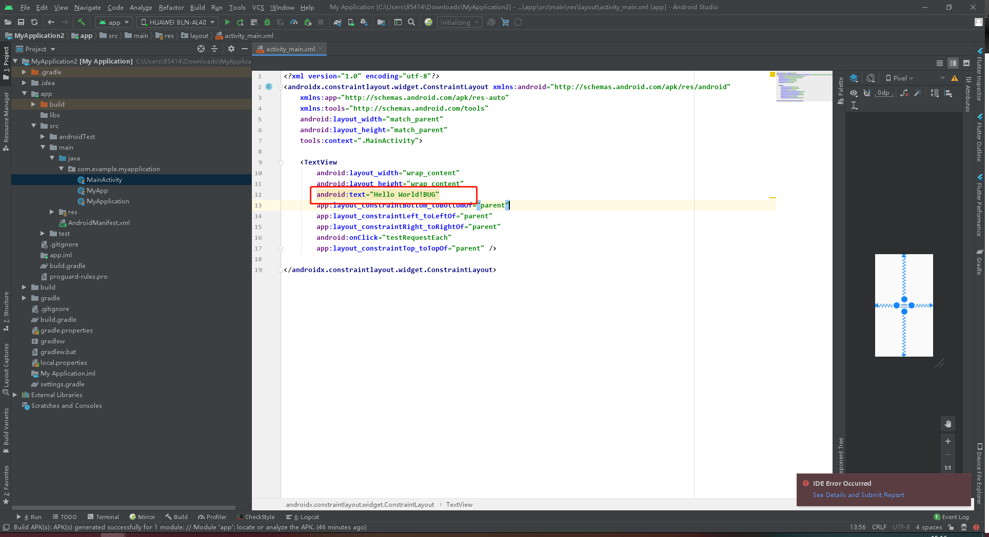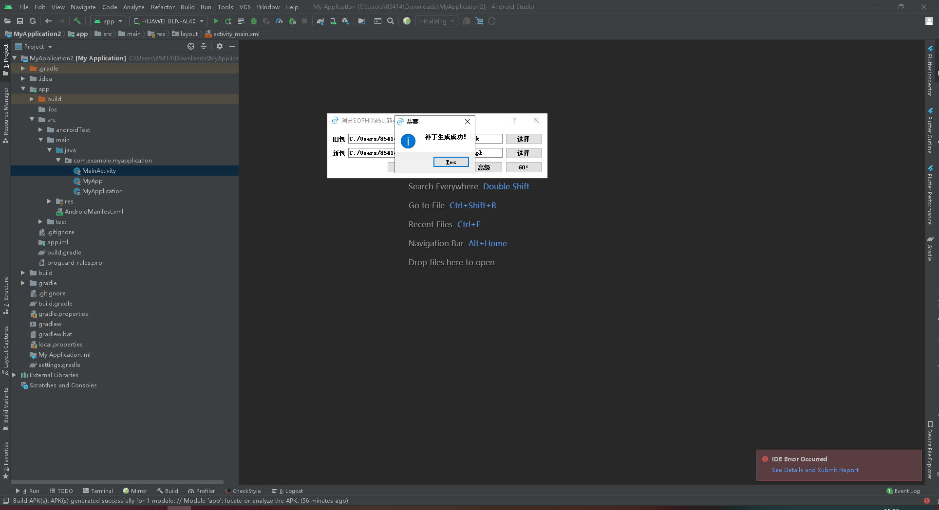 下面我们就开始生成基准包 和修改后的包 再到生成补丁(用个TextView来测试下)