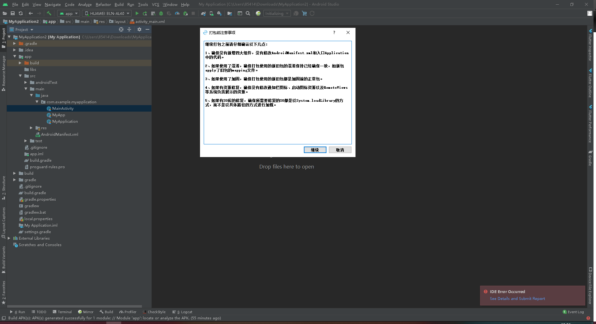 和旧版本一样打包 记住:打包签名 混淆都要和旧版本一致--------------------生成新包