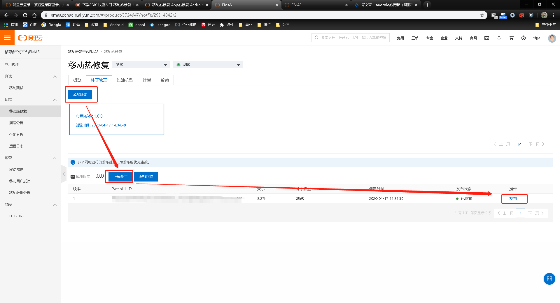 点击完发布,会跳转页面-------你可以先测试再发布----这里我直接新建发布直接发布补丁
