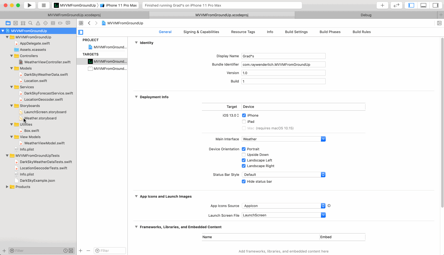 在本教程中,您将通过将天气应用程序的体系结构从MVC转换为MVVM来重构天气应用程序。首先,将所有与天气和位置相关的逻辑从视图控制器移到视图模型中。然后,您将为视图模型编写单元测试,以了解如何轻松地将测试集成到新的视图模型中。