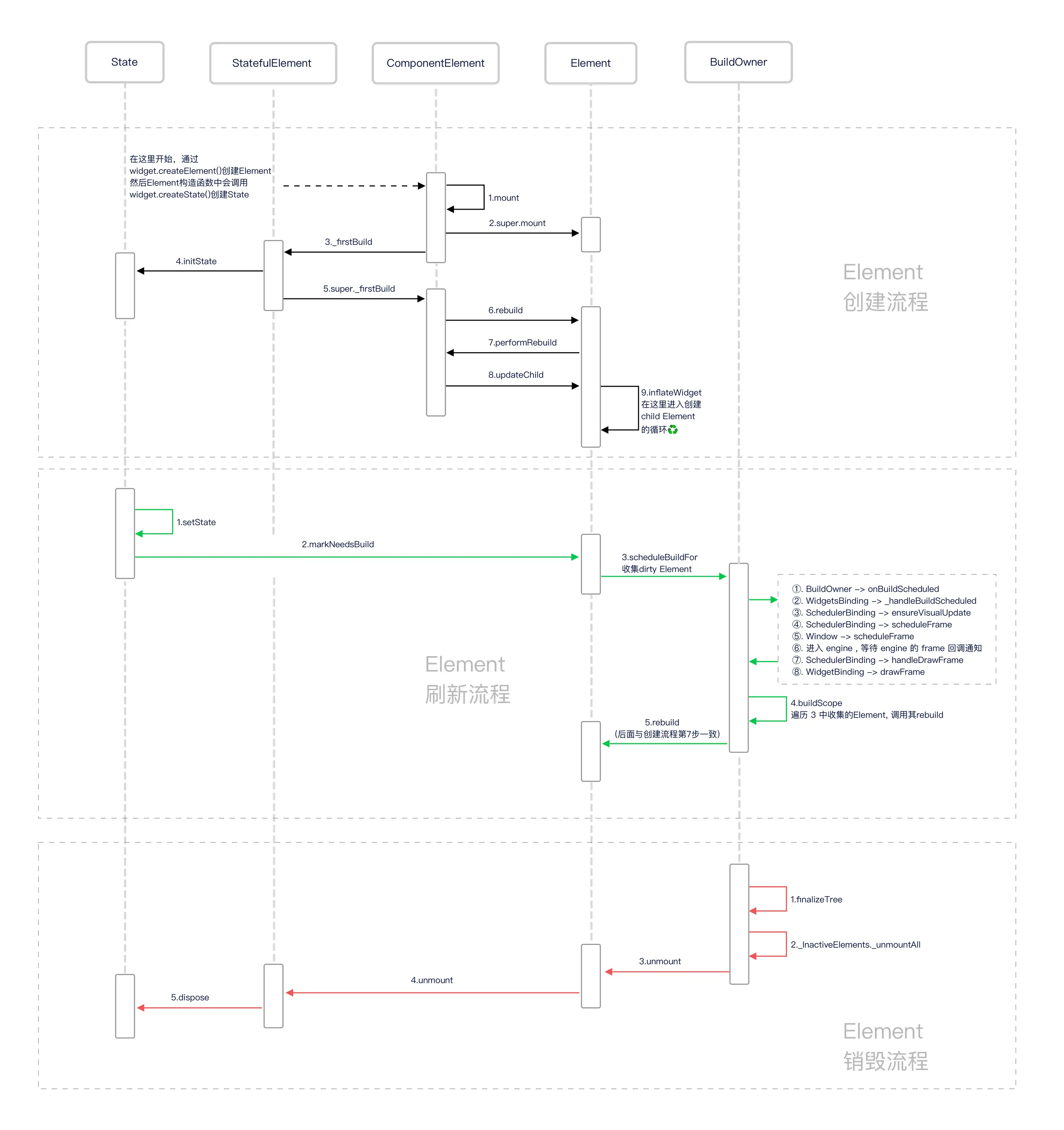 Element是真正的数据持有者,而State也是在它的构造函数里被创建,它的生命周期比State略长。- 每次刷新时,