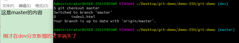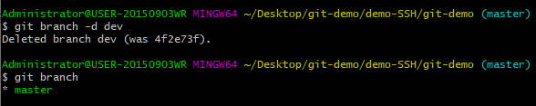 注意:在删除分支的时候,一定要先退出要删除的分支,否则删除不了。