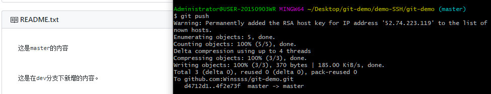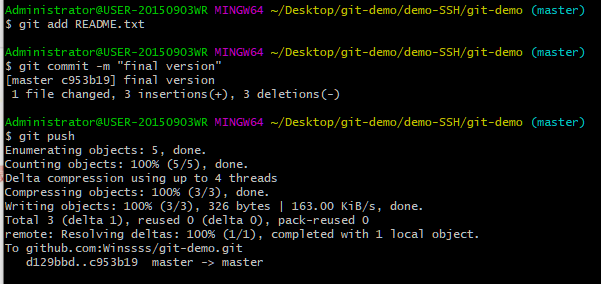 该方式与前面https方式相比,只是影响github对于用户的身份鉴权方式,对于git的具体操作(如提交本地、添加注释、提交远程等操作)没有任何影响。