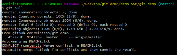 此时git已经将线上与本地仓库的冲突合并到对应的文件中