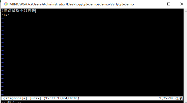 场景:在项目目录下有很多万年不变的文件目录,例如 CSS、js、images等,或者还有一些目录即便有改动,我们也不想让其提交到远程仓库的文档,此时我们可以使用“忽略文件”机制来实现需求。