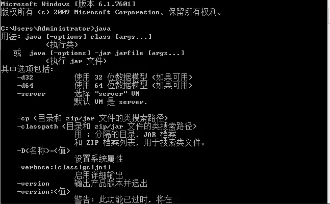 按下"window"+R 输入cmd 按下"ENTER" 输入java和javac 出现下图说明配置成功:
