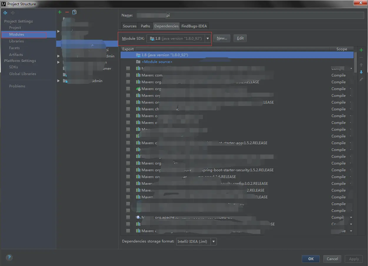 3.4确定modules下dependencies配置的jdk是否正确: