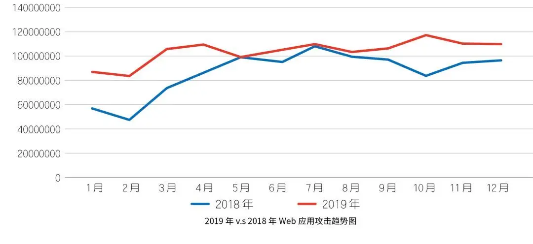 2019年上海云盾安全运营中心监测到Web应用攻击12.6亿次,同比上升 20%。