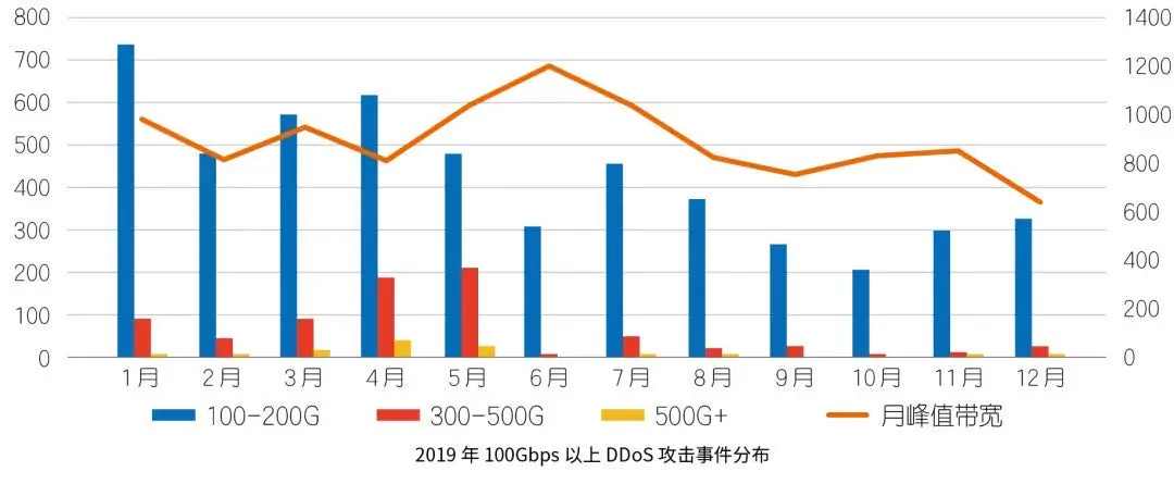 超过300Gbps的DDoS攻击占比超15%,月平均峰值带宽接近1Tbps。