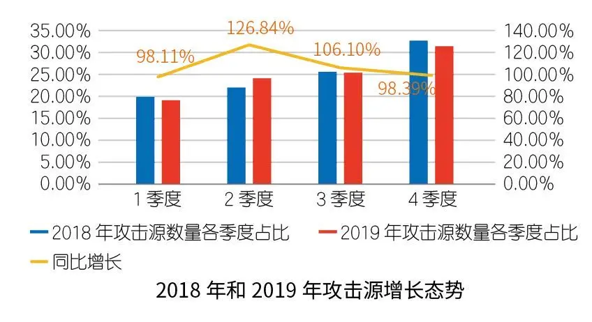 2019年白山ATD平台监测到网络攻击9566.5亿次,攻击源24.5亿个,攻击次数和攻击源数量保持高速增长。