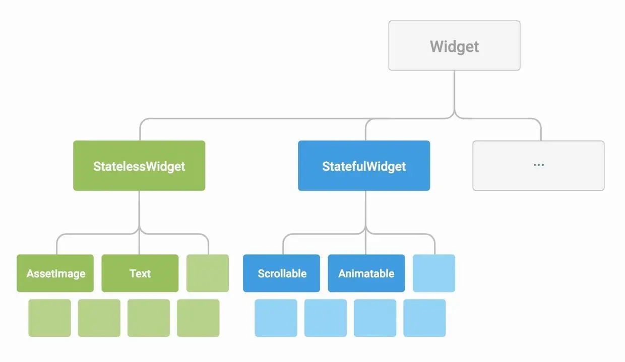 在Flutter应用中,和界面显示及用户交互的对象都是由Widget构成的,例如视图、动画、手势等。Widget分为StatelessWidget和StatefulWidget两种,分别是无状态和有状态的Widget。