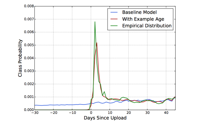 通过上图我们可以发现加入Example Age能使模型的预测更加接近经验分布,也更切合实际。