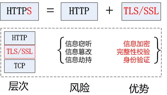HTTPS就是在原HTTP的基础上加上一层用于数据加密、解密、校验、身份认证的安全层SSL/TSL,用于HTTP存在的安全隐患。