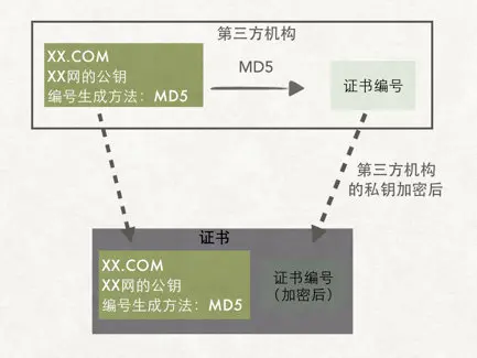 数字签名= 证书中加密后的证书编号