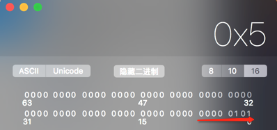 因为_tallRichHandsome占据一个内存空间,也就是8个二进制位,我们将05十六进制转化为二进制查看