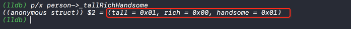NSLog(@"tall : %d, rich : %d, handsome : %d", person.tall,person.rich,person.handsome);