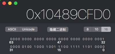 那么我们知道BOOL值只有两种情况 0 或者 1,但是却占据了一个字节的内存空间,而一个内存空间中有8个二进制位,并且二进制只有 0 或者 1 。那么是否可以使用1个二进制位来表示一个BOOL值,也就是说3个BOOL值最终只使用3个二进制位,也就是一个内存空间即可呢?如何实现这种方式? 首先如果使用这种方式需要自己写方法声明与实现,不可以写属性,因为一旦写属性,系统会自动帮我们添加成员变量。 另外想要将三个BOOL值存放在一个字节中,我们可以添加一个char类型的成员变量,char类型占据一个字节内存空间,也就是8个二进制位。可以使用其中最后三个二进制位来存储3个BOOL值。