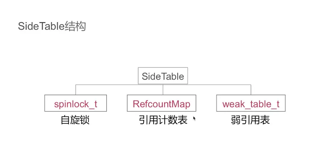但是如果 extar_rc不够存储的话,就需要将引用计数存入一个叫 Side Table 的数据结构中。