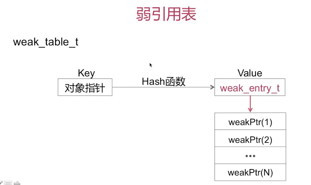 弱引用表也是一个hash表,通过hash函数找到对象对应的弱引用数组