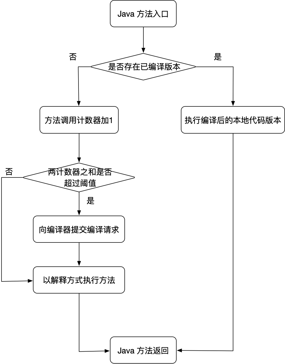 - 程序启动后,编译器逐渐发挥作用,把越来越多的代码编译成本地代码,可以减少解释器的中间消耗,提高执行效率。