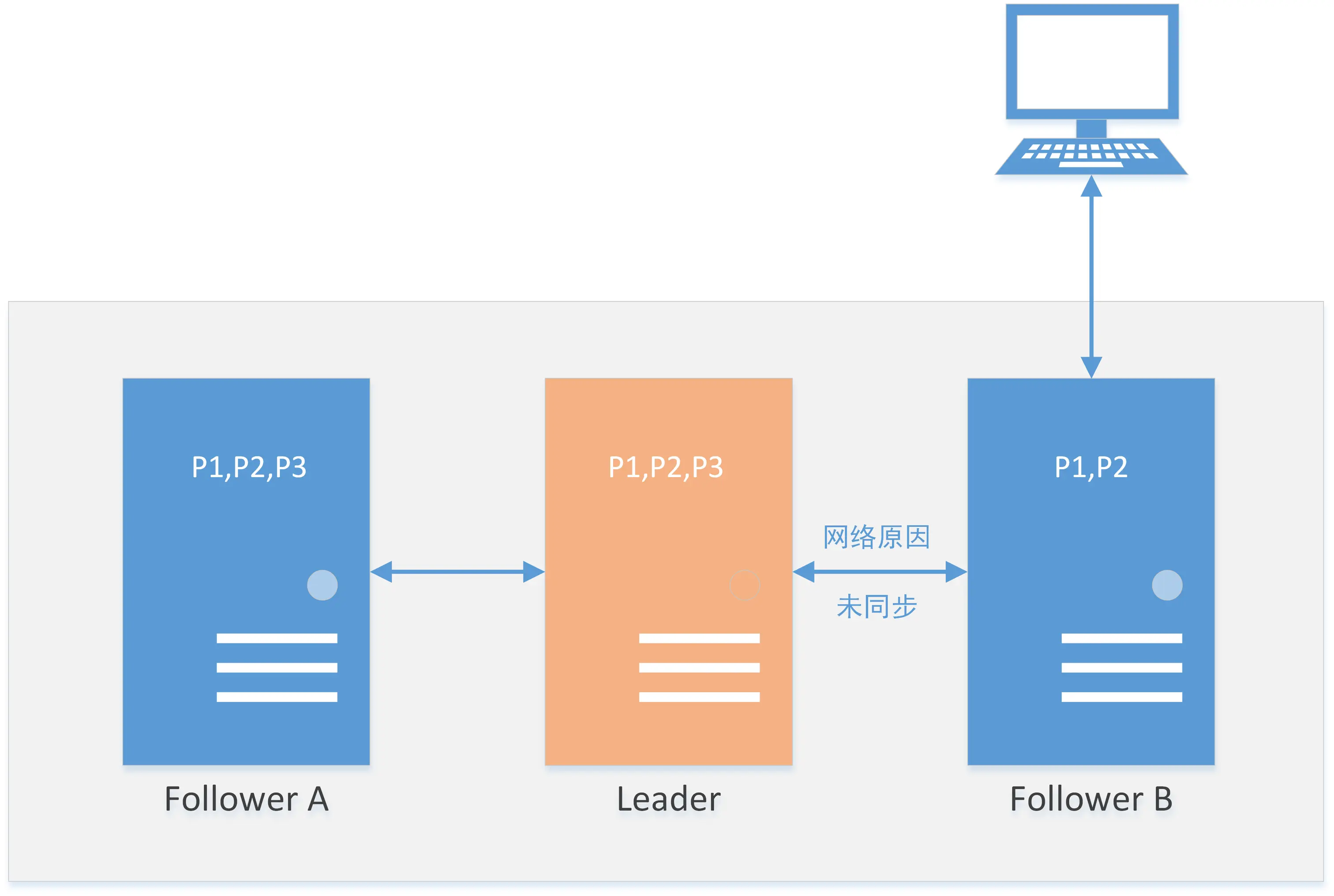 由于 ZAB 的过程,我们可以知道不一定是最新的。例如 Follower B 由于网络原因还没有接收到某个事务的 Commit 请求,数据版本将晚于其他 Server,这时读到的数据就不是集群中最新的了。虽然 ZAB 不能保证强一致性,但能保证顺序一致性。