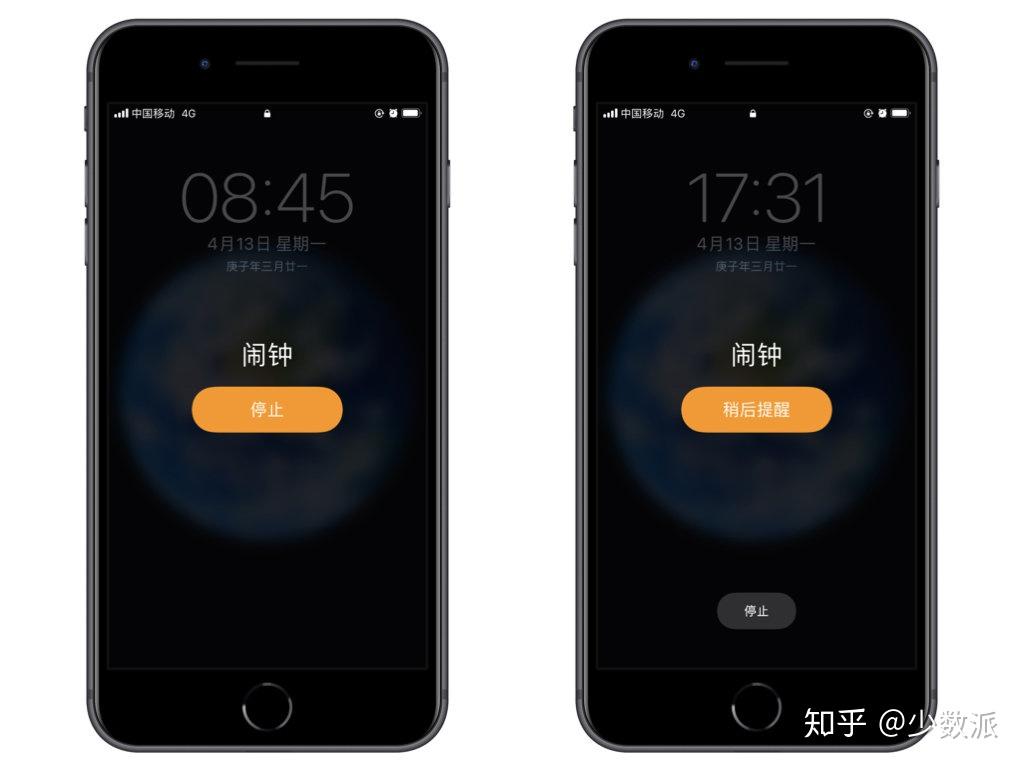 实现效果:到设定时间,闹钟会响起,你可以直接点击停止,然后解锁后自动进入钉钉打卡,如果此时还未到达考勤地点可以选择「稍后提醒」,重要的是比起突兀地弹出打卡提醒的方式,这种方式将解锁和停止闹钟有机地结合起来,使操作更加流畅。