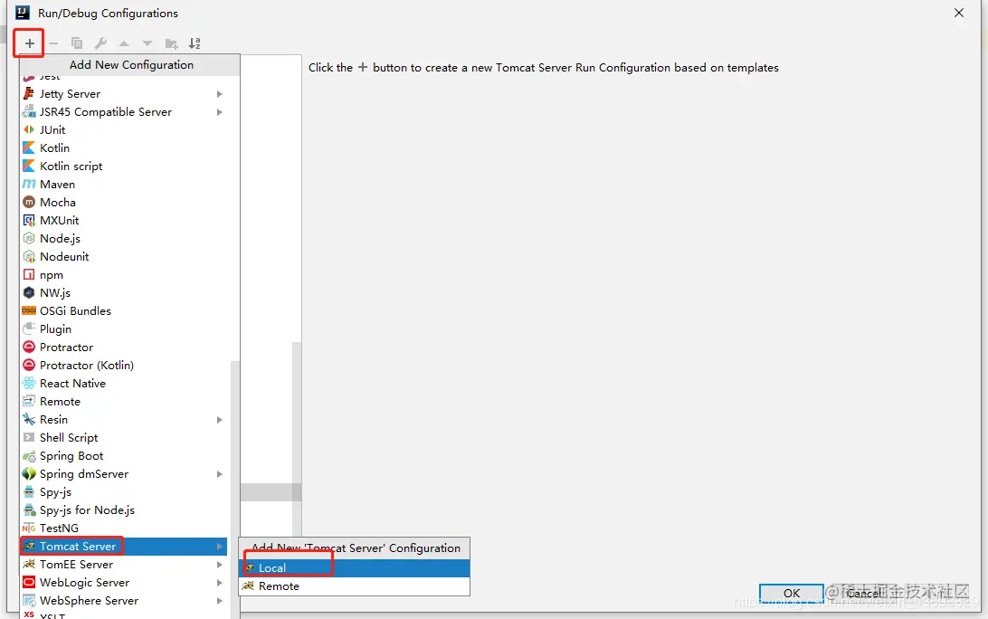- ① 配置本地tomcat,配置下上面下载的tomcat