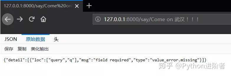 要知道的是,如果 short 参数没有默认值,则必须传参,否则 FastAPI 将会返回类似以下的错误信息。