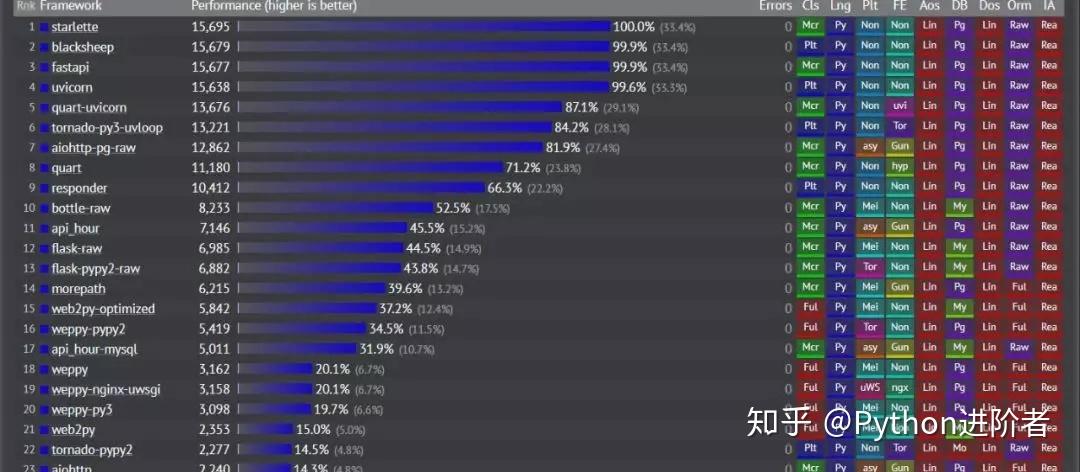 那么再来看看最新的 Python web框架的性能响应排行版