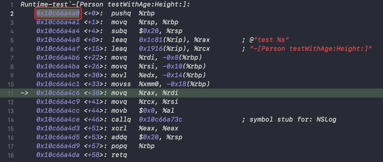Runtime-test[23738:8888825] 0x1017718a3,0x1017718a3