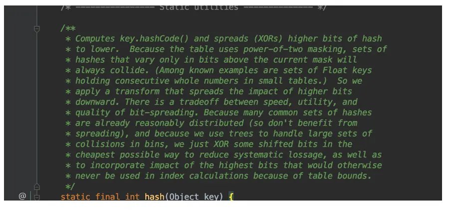 首先需要知道hashmap的底层数据结构,是数组加链表。既然这样就一定会发生hash碰撞(不了解的请看之前的文章)。其实个人觉得16就是为了均匀分布。使碰撞减少。同时通过阅读源码我们可以知道如何生成hash(java 1.8源码)