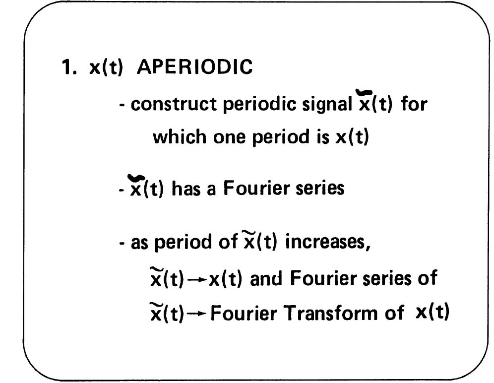 对于一个非周期信号,我们把它扩展成周期信号,当T0→∞,周期信号→非周期信号